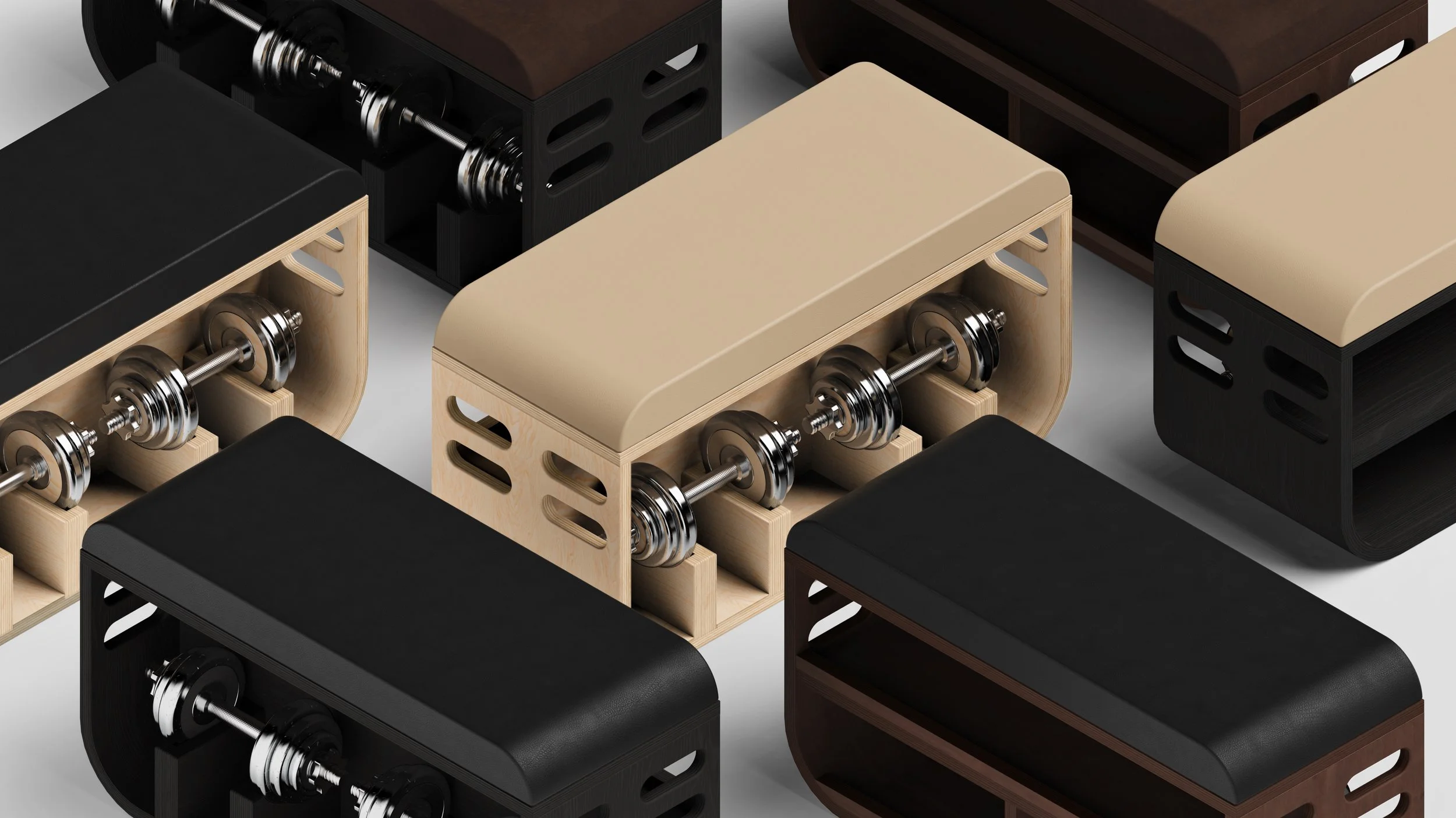 Benchmark is a workout bench designed to fit naturally into the home. Traditional equipment still retains industrial materials and utilitarian colour schemes used in the gym, disrupting the home aesthetic. Benchmark takes a different approach. It features a steam-bent wood base, a natural leather cushion that patinas over time, and discreet storage for items like a yoga mat, foam roller and dumbbell plates. Built-in handles make it easy to move and double as anchor points for resistance bands, enabling over 150 exercises. Available in a choice of three wood veneers and three leather finishes, Benchmark offers nine combinations to suit a range of interiors. Its curved form and screw-less construction reflect a focus on craftsmanship, durability and lasting quality in a space made for living and moving.