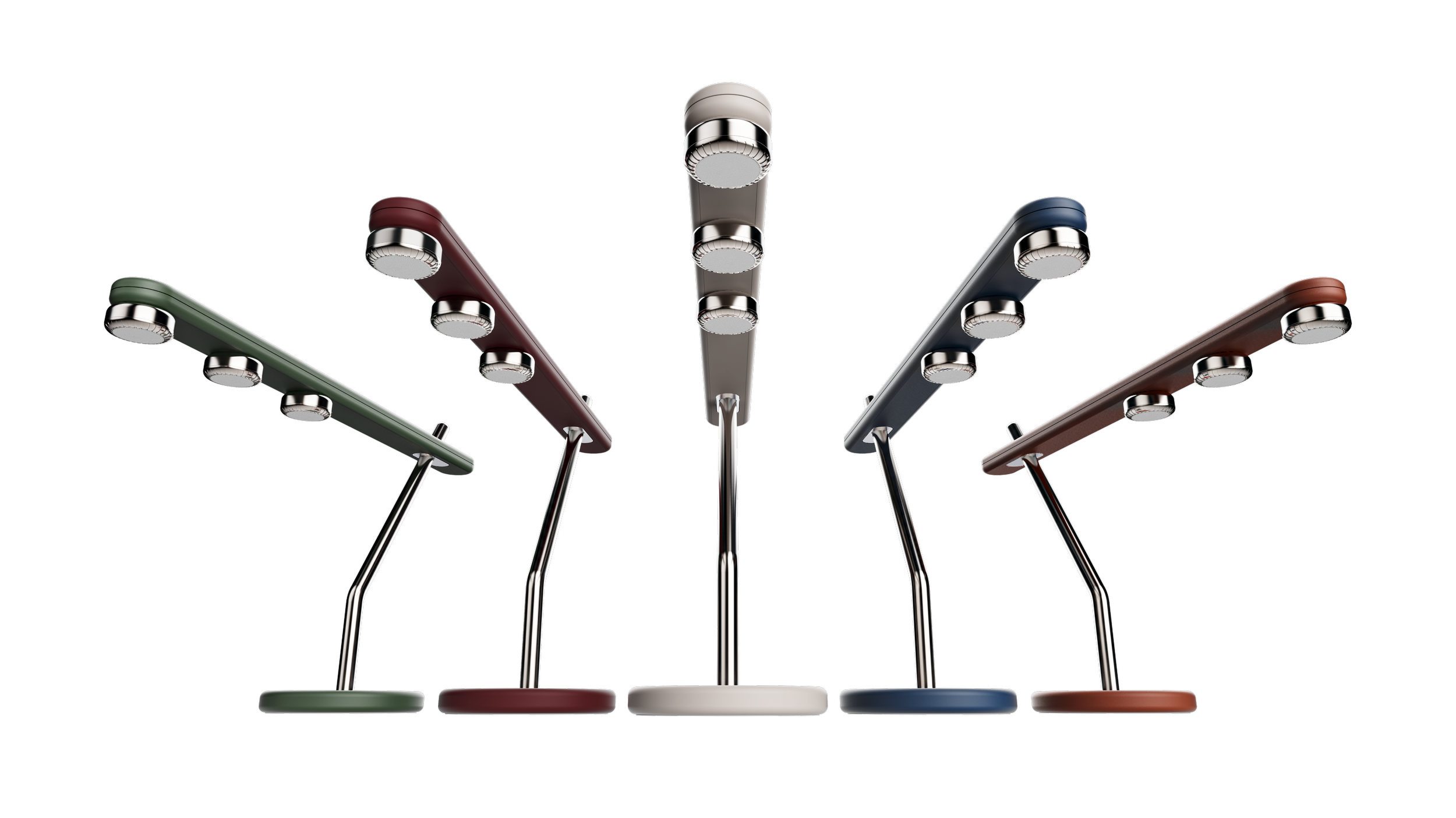 Task embodies a tri-finish design, available in a spectrum of colours. A powder-coated die cast base provides sufficient stability to the colour-matched PBT arm. Accented by the support pole and each POD in a colour complimenting micro-bead anodisation finish bringing consistency across each choice.